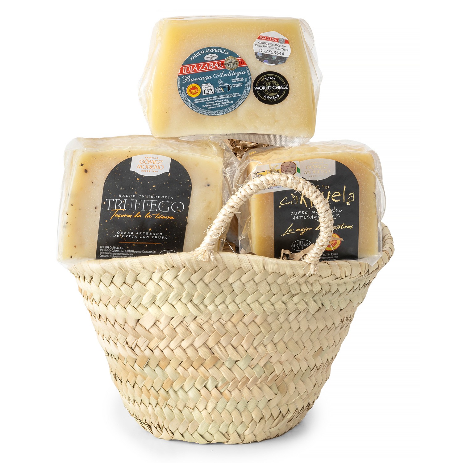 Presentado en un capazo de palma este regalo gourmet incluye:
