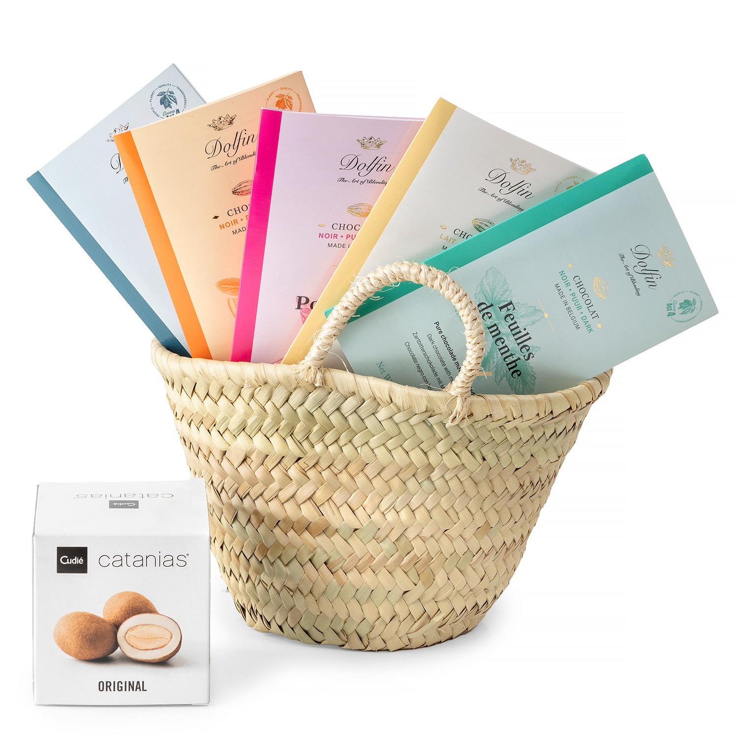 Incluidos en bonito capazo de palma artesanal forman un regalo original que destaca por su buen gusto y elegancia y resulta ideal para regalar en todo tipo de ocasiones desde un cumpleaños hasta un agradecimiento, un regalo invisible o un detalle romántico, ¿Por qué quien puede resistirse al placer del chocolate?